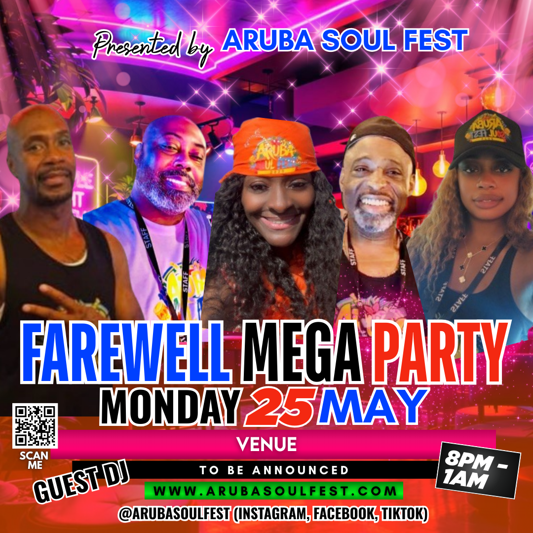 End Aruba Soul Fest with a bang at the farewell mega party. Celebrate the last night of the festival with music, dancing, and an unforgettable send-off surrounded by friends and good vibes.